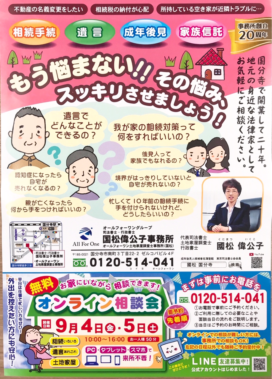 国松司法書士法人では、身近な街の法律家として不動産登記・会社法人登記・相続・遺言・成年後見・家族信託など経験豊かなスタッフが、丁寧に対応させて頂きます。